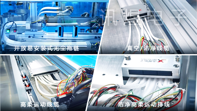 讯煜电子在线束、运动线缆行业已经沉淀20多年,目前拥有无尘拖链、线缆、线束三大事业部,厂区面积达7000多平米。公司专注于无尘拖链、洁净高柔运动排线、真空线缆、洁净运动线缆、高柔运动线缆、中高端线束的研发和生产,并提供以上所有系列产品全集成一站式服务。 运动线缆是讯煜电子主打产品之一,运动线缆又叫拖链线缆,是无尘拖链以及各类拖链中使用的柔性线缆,在智能制造运动控制领域发挥着重要的作用。区别于工业静态线缆,运动线缆不仅要具备静态线缆的所有功能,还需要在运动场景下稳定、可靠地运行,因此运动线缆在材料、加工工艺、电气性能及运动性能等方面,都比工业静态线缆的要求高很多。